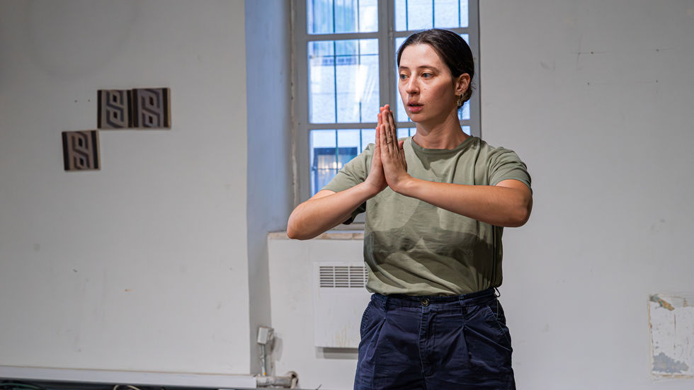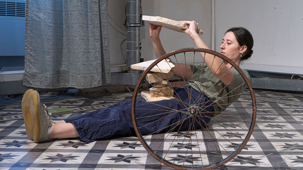Who are we permitted to be one with? To feel for and suffer with? Shared affect is a well-regulated commodity these days. Four axes of separation and unity guided a series of meditations I shared with my audience through a collage of texts, choreographed movements, and constellations of ready-made and found objects. The first axis, the most pressing: the divide between myself, my Israeli audience, and the Palestinian—constantly othered and thus barred from the possibility of co-suffering. Enmeshed within this horizontal line, one inevitably encounters the otherness of the transcendent, ever present in absence and absent in presence throughout in Jerusalem, the space me and my audience shared. Pushing the boundaries of affection further, I explored cyborgic interactions between myself and my bicycles (between us and our machines), and between myself and my late grandmother's hat (between us and our tools, masks, relics). Finally, the almost clichéd, much-derided fourth wall—that membrane between performer and audience, between me and "them." Is there something common to how unity and separation are policed across these realms? Can we marshal resources from one axis to challenge the deadly effects in another? For me, here and now in Jerusalem—suspended between the River Jordan and the concrete killing fields of Gaza—rendering myself porous to others becomes an ethical urgency pressing enough to question, even if futilely, the compartmentalization of identity and care we accept as given.